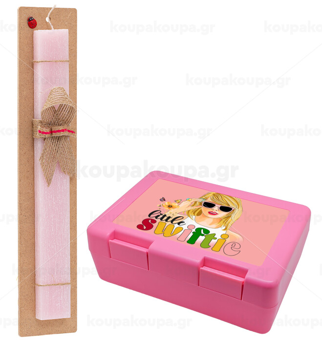 Little Swiftie, Easter Set, children's snack container PINK & scented flat Easter candle (30cm) (PINK)