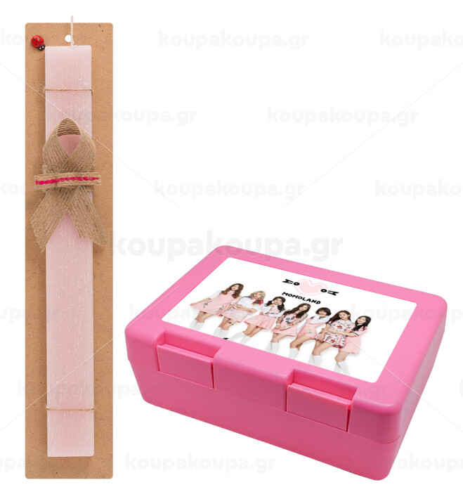 Momoland pink, Easter Set, children's snack container PINK & scented flat Easter candle (30cm) (PINK)