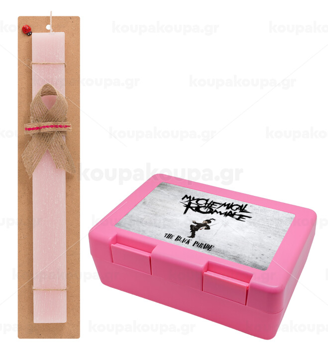 My Chemical Romance Black Parade, Easter Set, children's snack container PINK & scented flat Easter candle (30cm) (PINK)