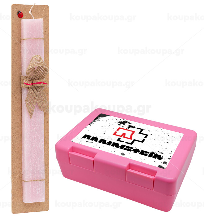 Rammstein, Easter Set, children's snack container PINK & scented flat Easter candle (30cm) (PINK)