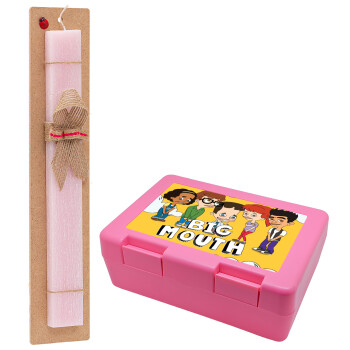 Big mouth, Easter Set, children's snack container PINK & scented flat Easter candle (30cm) (PINK)