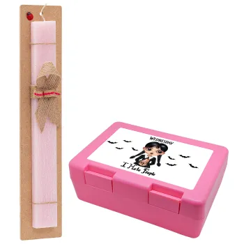 Wednesday Adams, i hate people, Easter Set, children's snack container PINK & scented flat Easter candle (30cm) (PINK)