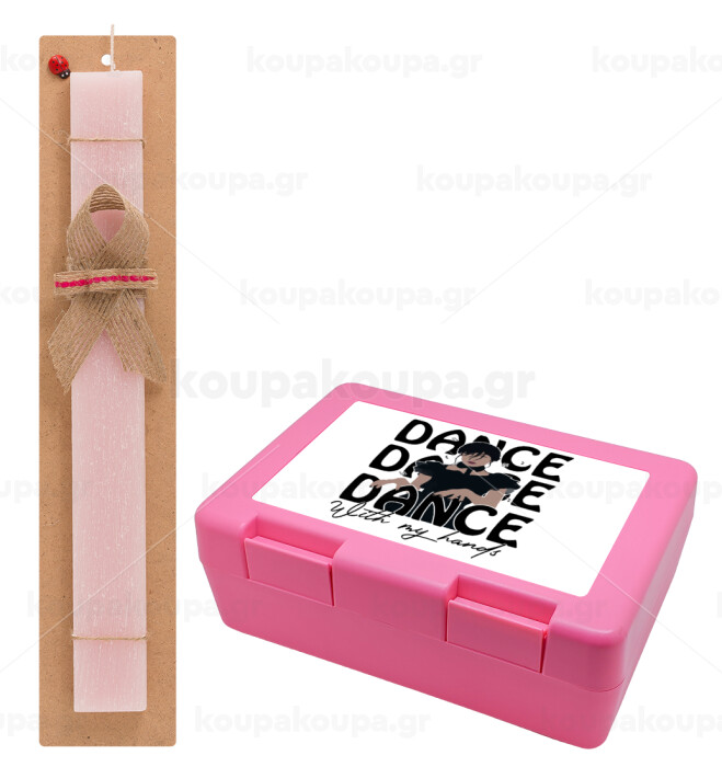 Wednesday dance dance dance, Easter Set, children's snack container PINK & scented flat Easter candle (30cm) (PINK)