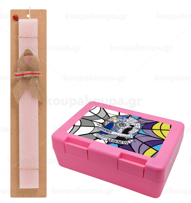 Wednesday window, Easter Set, children's snack container PINK & scented flat Easter candle (30cm) (PINK)
