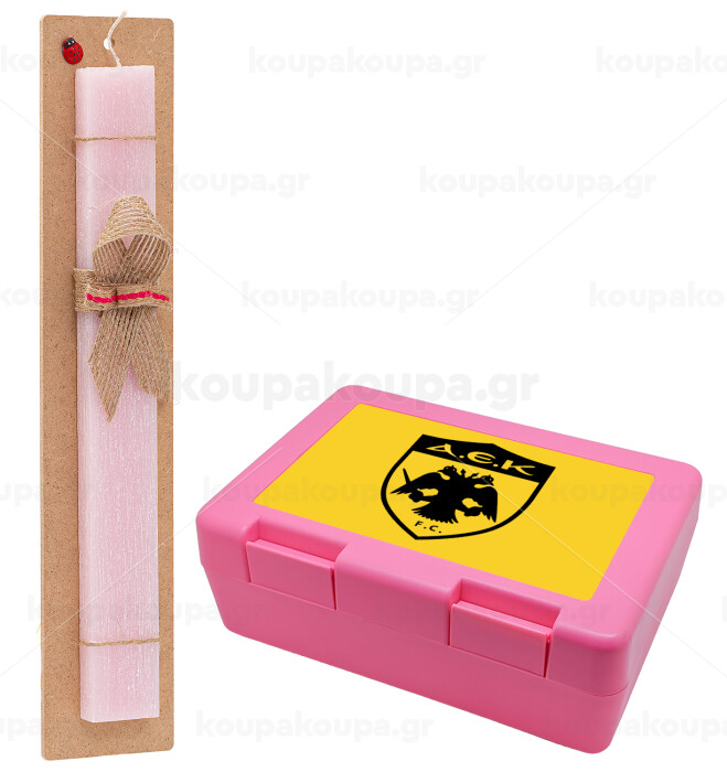 ΑΕΚ, Easter Set, children's snack container PINK & scented flat Easter candle (30cm) (PINK)