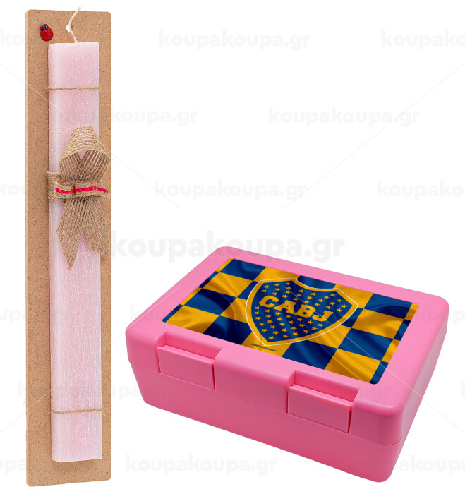 Club Atlético Boca Juniors, Easter Set, children's snack container PINK & scented flat Easter candle (30cm) (PINK)