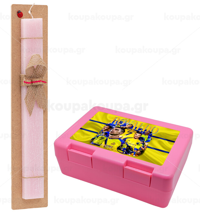Cristiano Ronaldo Al Nassr, Easter Set, children's snack container PINK & scented flat Easter candle (30cm) (PINK)