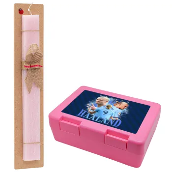 Erling Haaland, Easter Set, children's snack container PINK & scented flat Easter candle (30cm) (PINK)