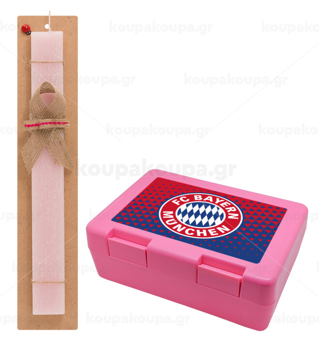 FC Bayern Munich, Easter Set, children's snack container PINK & scented flat Easter candle (30cm) (PINK)