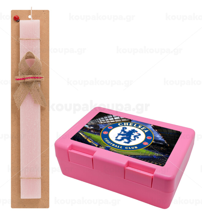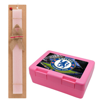 FC Chelsea, Easter Set, children's snack container PINK & scented flat Easter candle (30cm) (PINK)