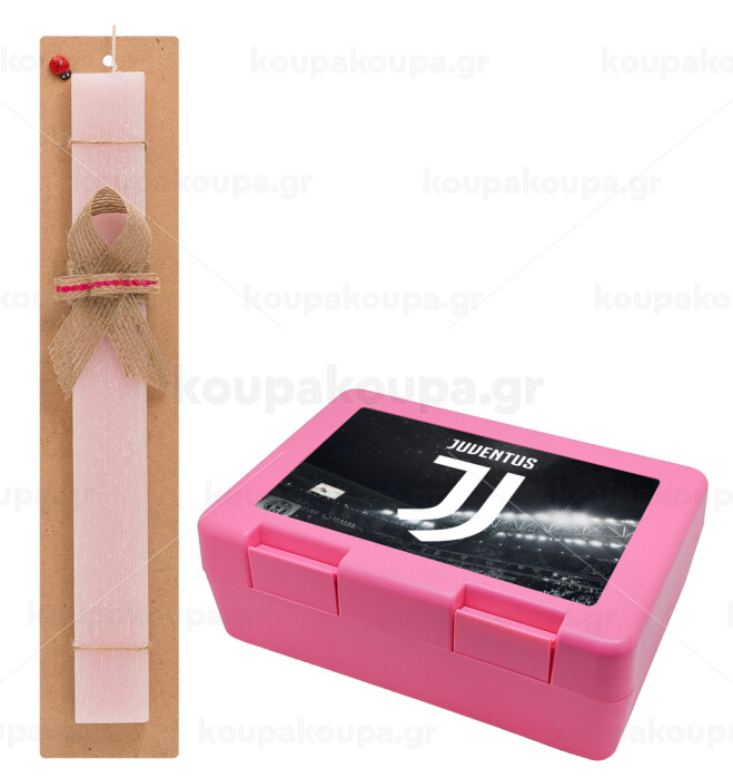 FC Juventus, Easter Set, children's snack container PINK & scented flat Easter candle (30cm) (PINK)