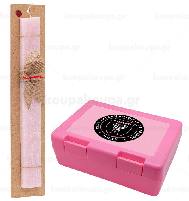 Inter Miami CF, Easter Set, children's snack container PINK & scented flat Easter candle (30cm) (PINK)