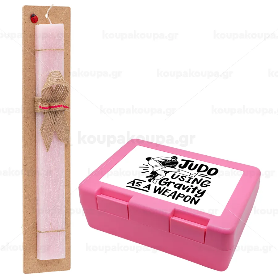 Judo using gravity as a weapon, Easter Set, children's snack container PINK & scented flat Easter candle (30cm) (PINK)