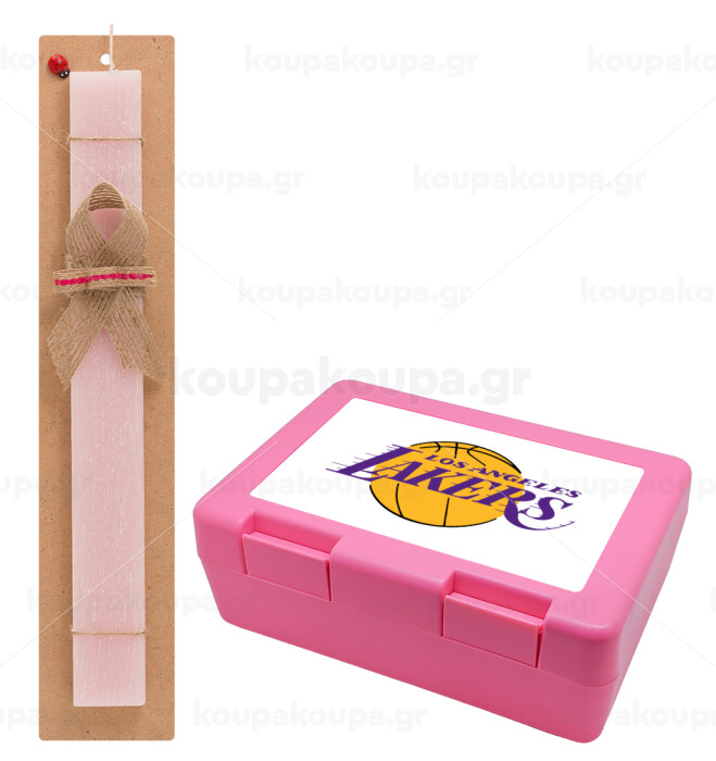 Lakers, Easter Set, children's snack container PINK & scented flat Easter candle (30cm) (PINK)