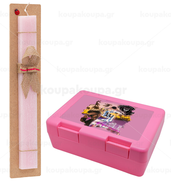 Lionel Messi Miami, Easter Set, children's snack container PINK & scented flat Easter candle (30cm) (PINK)