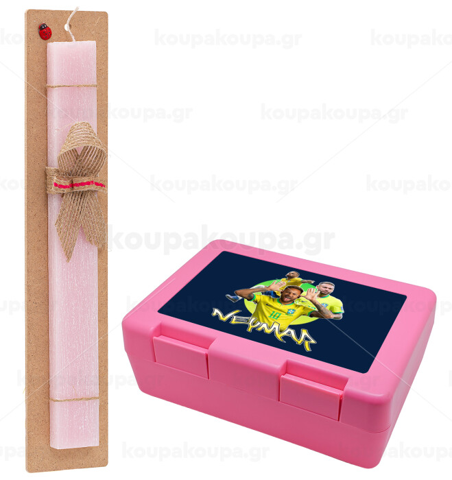 Neymar JR, Easter Set, children's snack container PINK & scented flat Easter candle (30cm) (PINK)