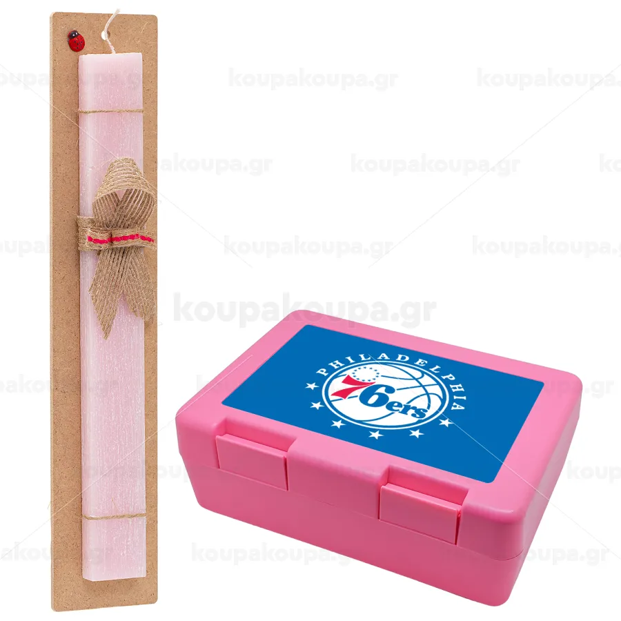 Philadelphia 76ers, Easter Set, children's snack container PINK & scented flat Easter candle (30cm) (PINK)