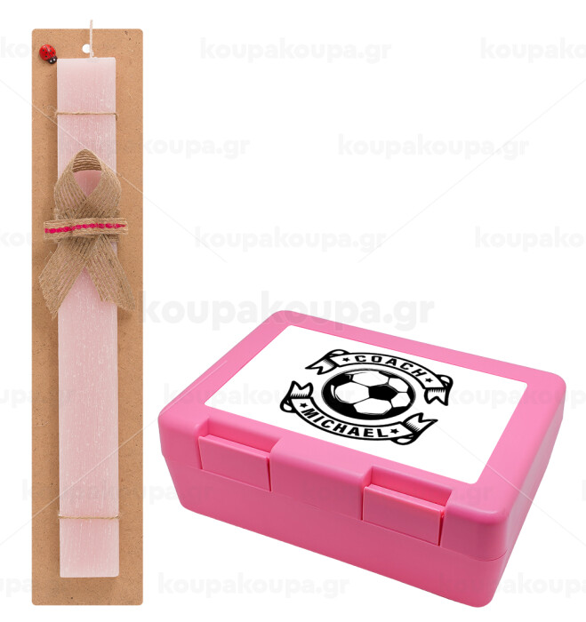 Soccer coach, Easter Set, children's snack container PINK & scented flat Easter candle (30cm) (PINK)