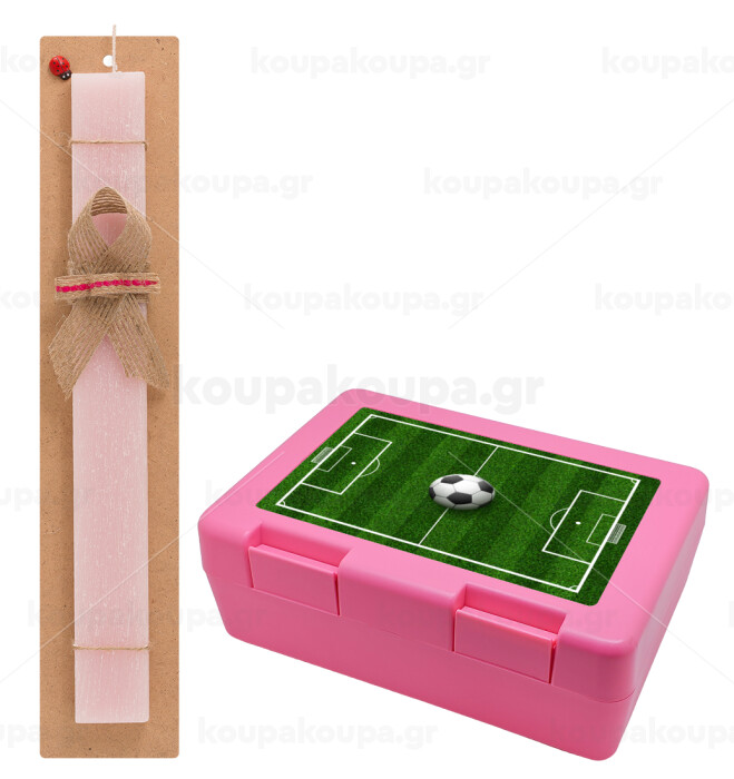 Soccer field, Γήπεδο ποδοσφαίρου, Easter Set, children's snack container PINK & scented flat Easter candle (30cm) (PINK)