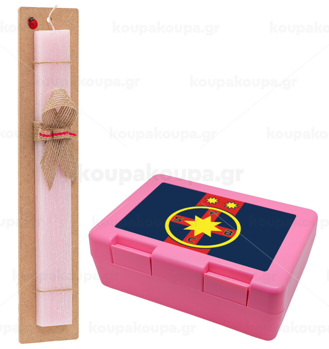 FC Steaua Bucuresti (FCSB), Easter Set, children's snack container PINK & scented flat Easter candle (30cm) (PINK)