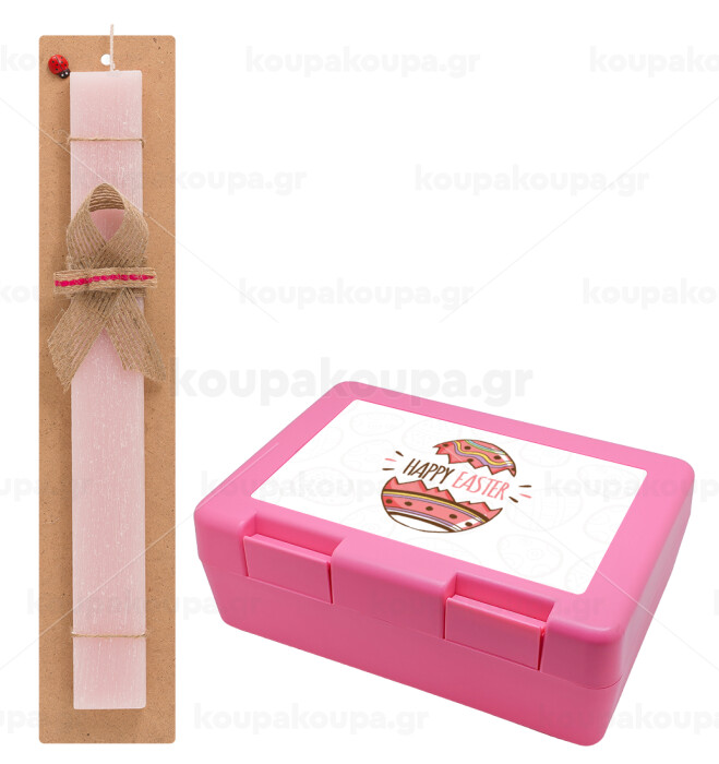 Happy easter egg, Easter Set, children's snack container PINK & scented flat Easter candle (30cm) (PINK)