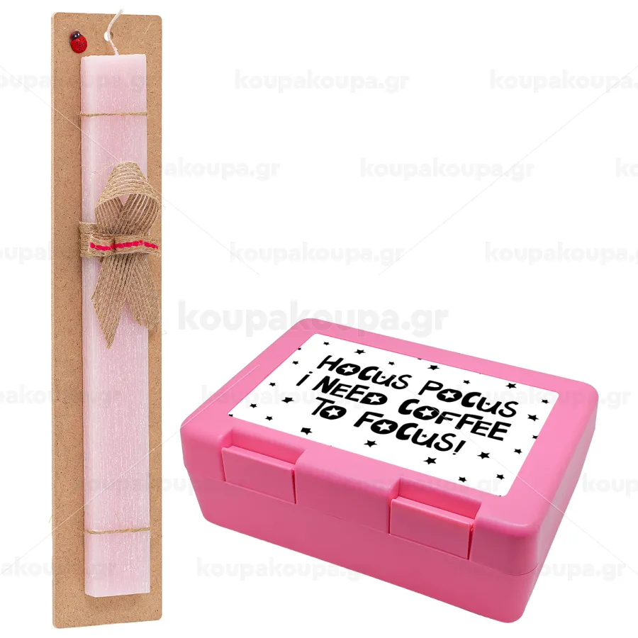 Hocus pocus i need coffee to focus - halloween, Easter Set, children's snack container PINK & scented flat Easter candle (30cm) (PINK)