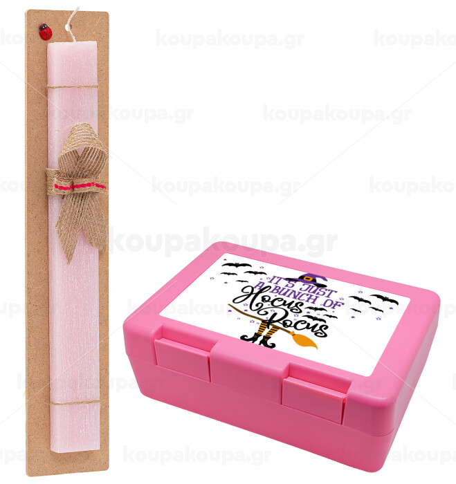 It's just a bunch of hocus pocus - halloween, Easter Set, children's snack container PINK & scented flat Easter candle (30cm) (PINK)