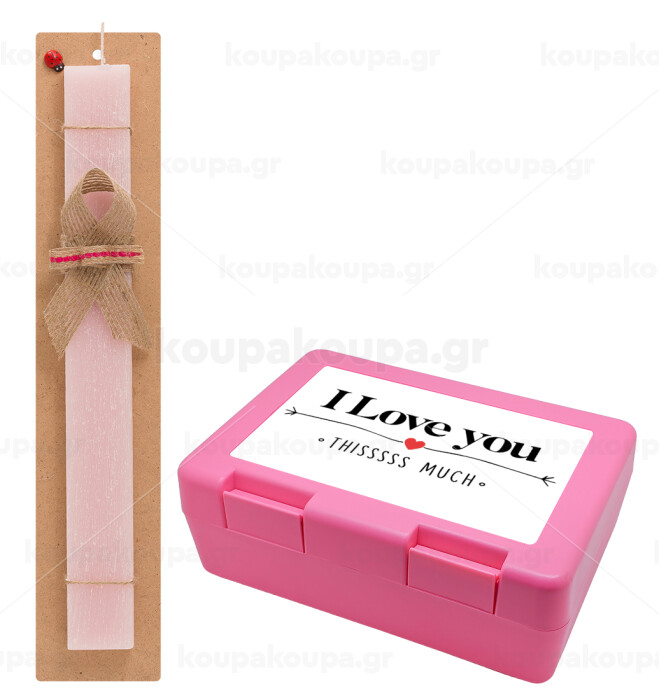 I Love you thisssss much, Easter Set, children's snack container PINK & scented flat Easter candle (30cm) (PINK)
