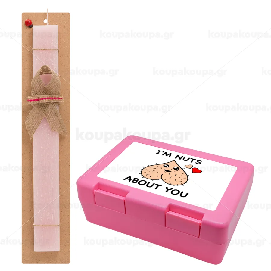I'm Nuts About You, Easter Set, children's snack container PINK & scented flat Easter candle (30cm) (PINK)