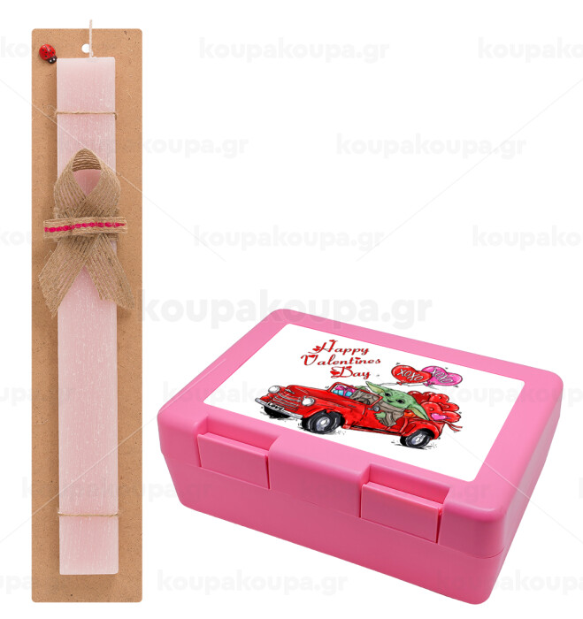 Yoda, happy valentines day (xoxo), Easter Set, children's snack container PINK & scented flat Easter candle (30cm) (PINK)