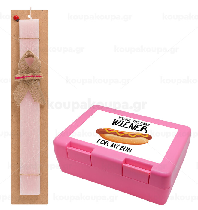 You re the only wiener for my bun, Easter Set, children's snack container PINK & scented flat Easter candle (30cm) (PINK)