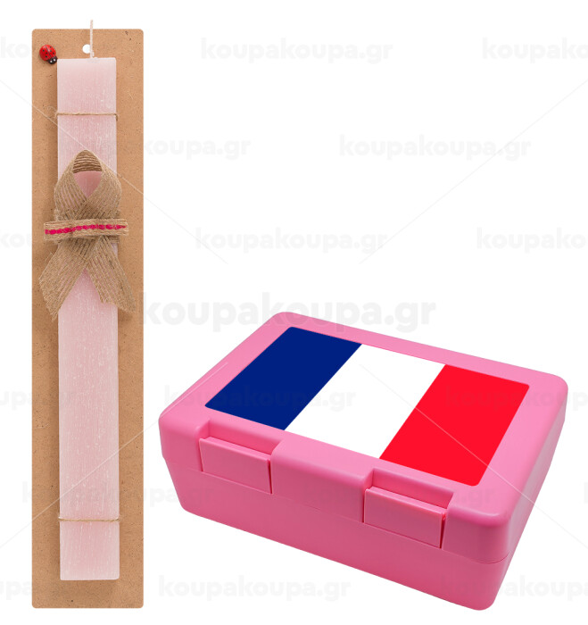 France flag, Easter Set, children's snack container PINK & scented flat Easter candle (30cm) (PINK)