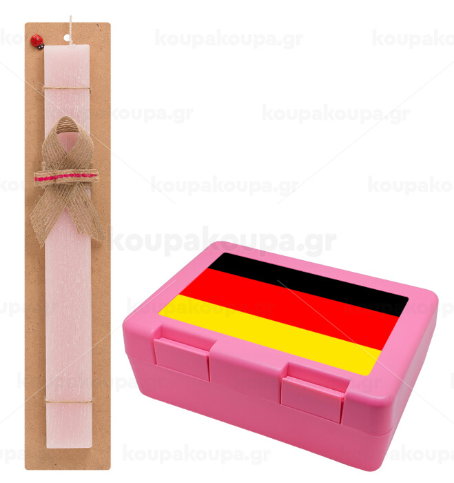 Germany flag, Easter Set, children's snack container PINK & scented flat Easter candle (30cm) (PINK)