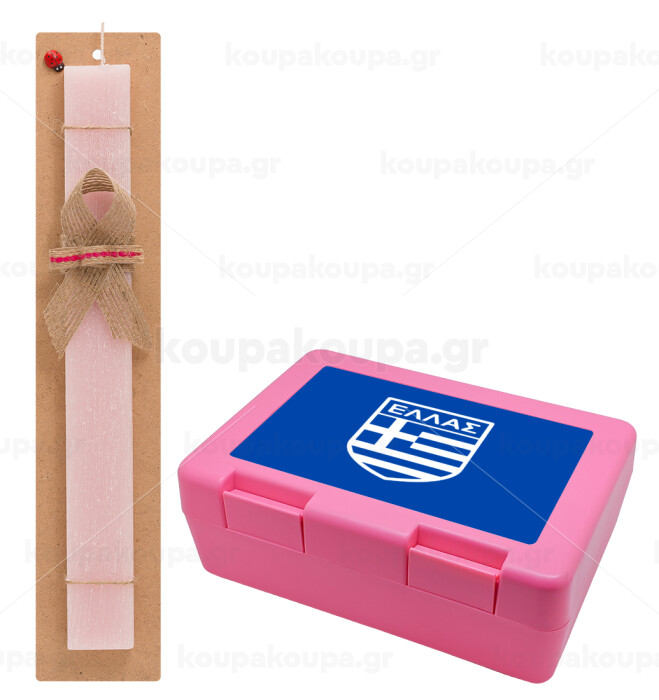 Hellas, Easter Set, children's snack container PINK & scented flat Easter candle (30cm) (PINK)