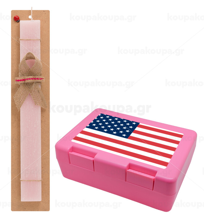 USA flag, Easter Set, children's snack container PINK & scented flat Easter candle (30cm) (PINK)