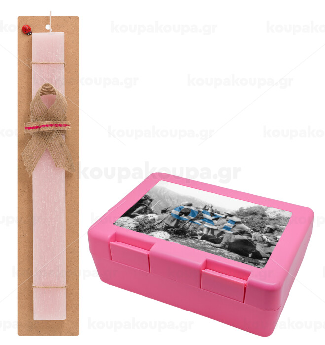 28η οκτωβρίου 1940, Easter Set, children's snack container PINK & scented flat Easter candle (30cm) (PINK)