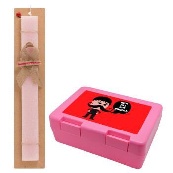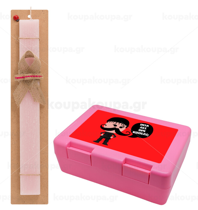 Κρητικός "Ίντα λες ωρέ κοπέλι", Easter Set, children's snack container PINK & scented flat Easter candle (30cm) (PINK)