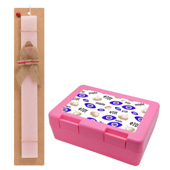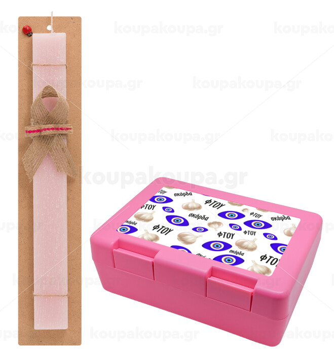 Φτου, φτου, σκόρδα!!!, Easter Set, children's snack container PINK & scented flat Easter candle (30cm) (PINK)