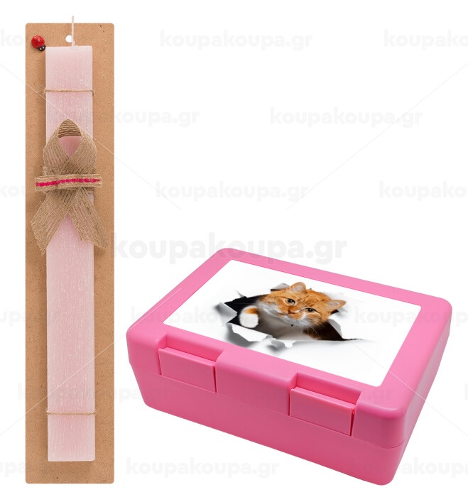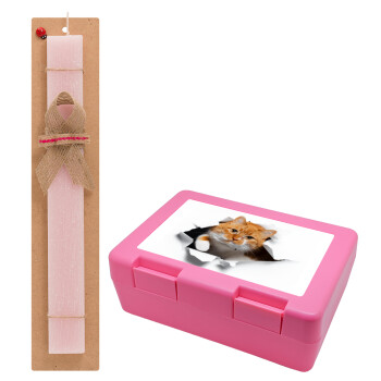 Cat cracked, Easter Set, children's snack container PINK & scented flat Easter candle (30cm) (PINK)