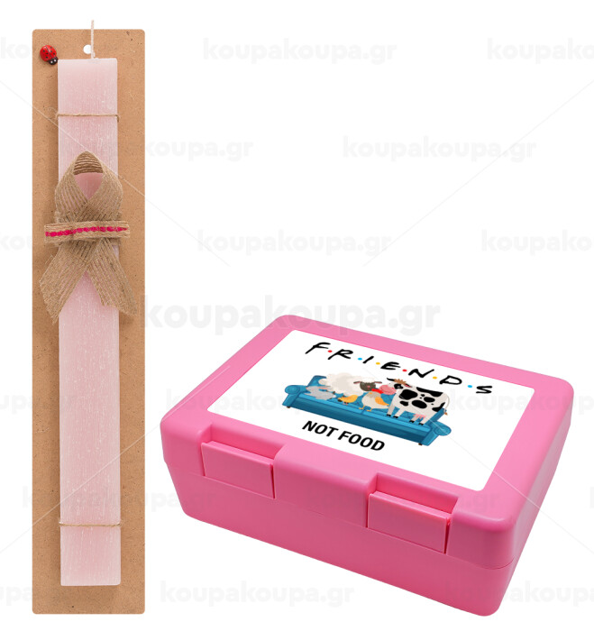 friends, not food, Easter Set, children's snack container PINK & scented flat Easter candle (30cm) (PINK)