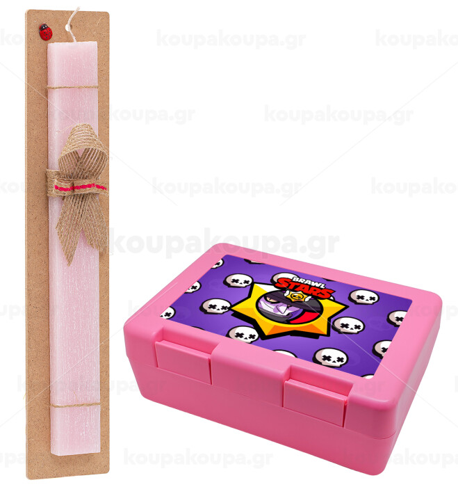 Brawl Stars Mortis, Easter Set, children's snack container PINK & scented flat Easter candle (30cm) (PINK)
