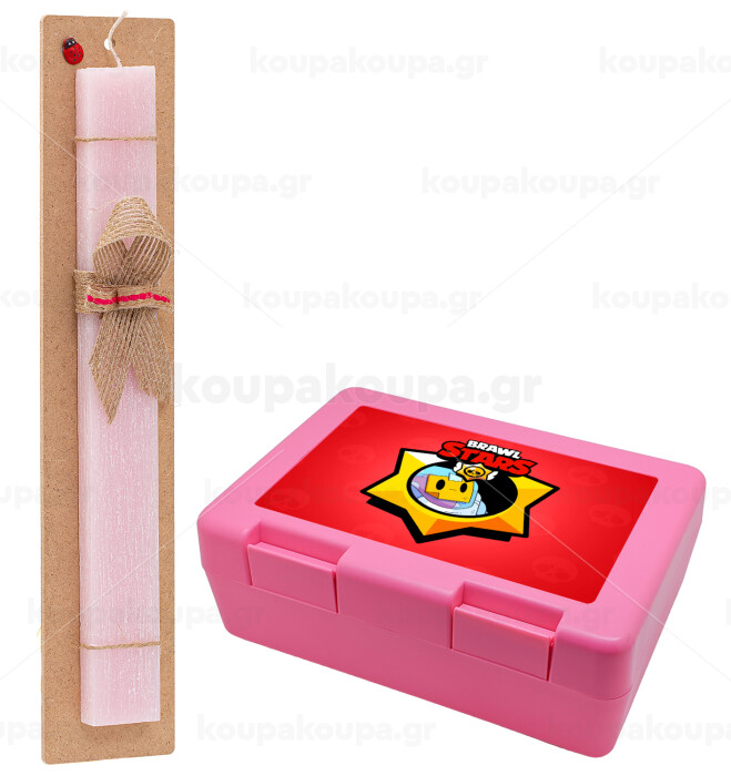 Brawl Stars Sprout, Easter Set, children's snack container PINK & scented flat Easter candle (30cm) (PINK)