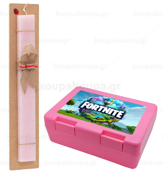 Fortnite land, Easter Set, children's snack container PINK & scented flat Easter candle (30cm) (PINK)