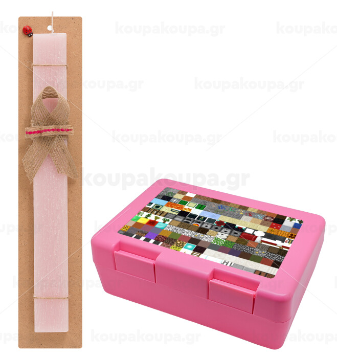 Minecraft blocks, Easter Set, children's snack container PINK & scented flat Easter candle (30cm) (PINK)
