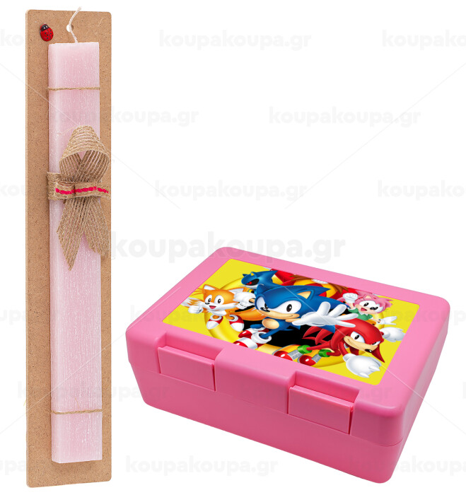 Sonic and friends, Easter Set, children's snack container PINK & scented flat Easter candle (30cm) (PINK)