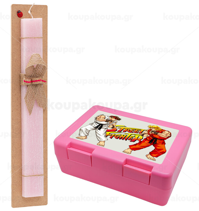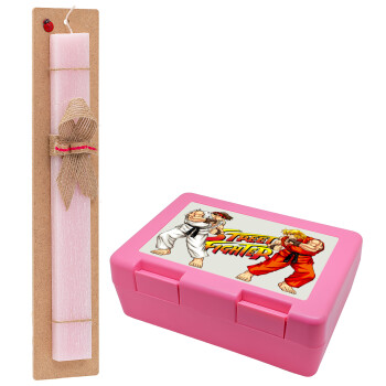 Street fighter, Easter Set, children's snack container PINK & scented flat Easter candle (30cm) (PINK)