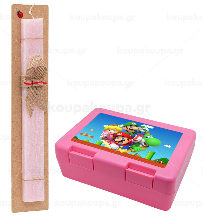 Super mario and Friends, Easter Set, children's snack container PINK & scented flat Easter candle (30cm) (PINK)