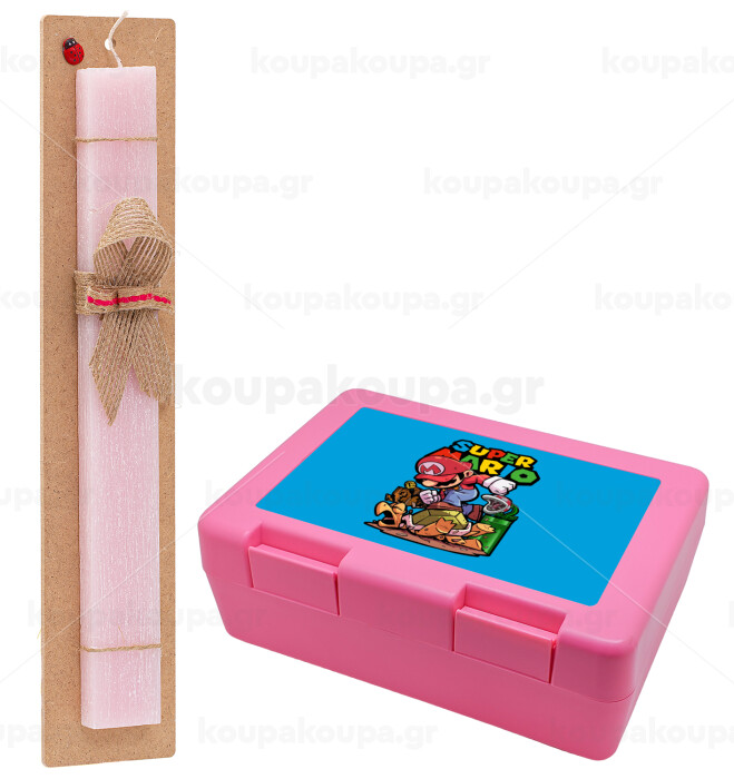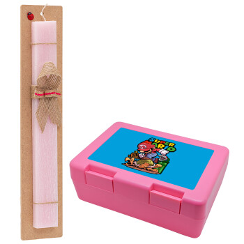 Super mario Jump, Easter Set, children's snack container PINK & scented flat Easter candle (30cm) (PINK)