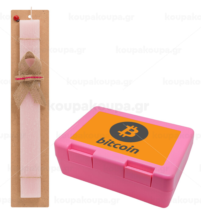 Bitcoin, Easter Set, children's snack container PINK & scented flat Easter candle (30cm) (PINK)