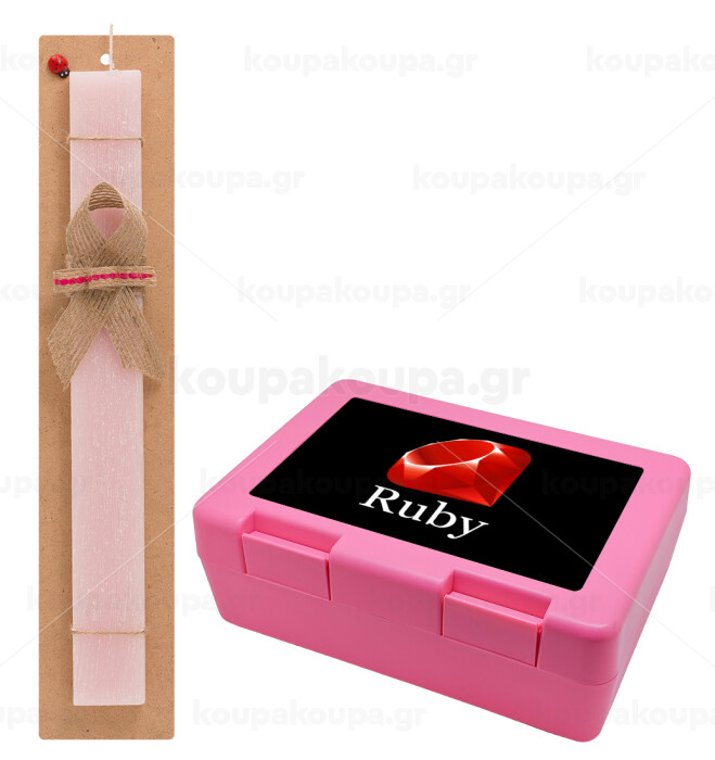 Ruby, Easter Set, children's snack container PINK & scented flat Easter candle (30cm) (PINK)